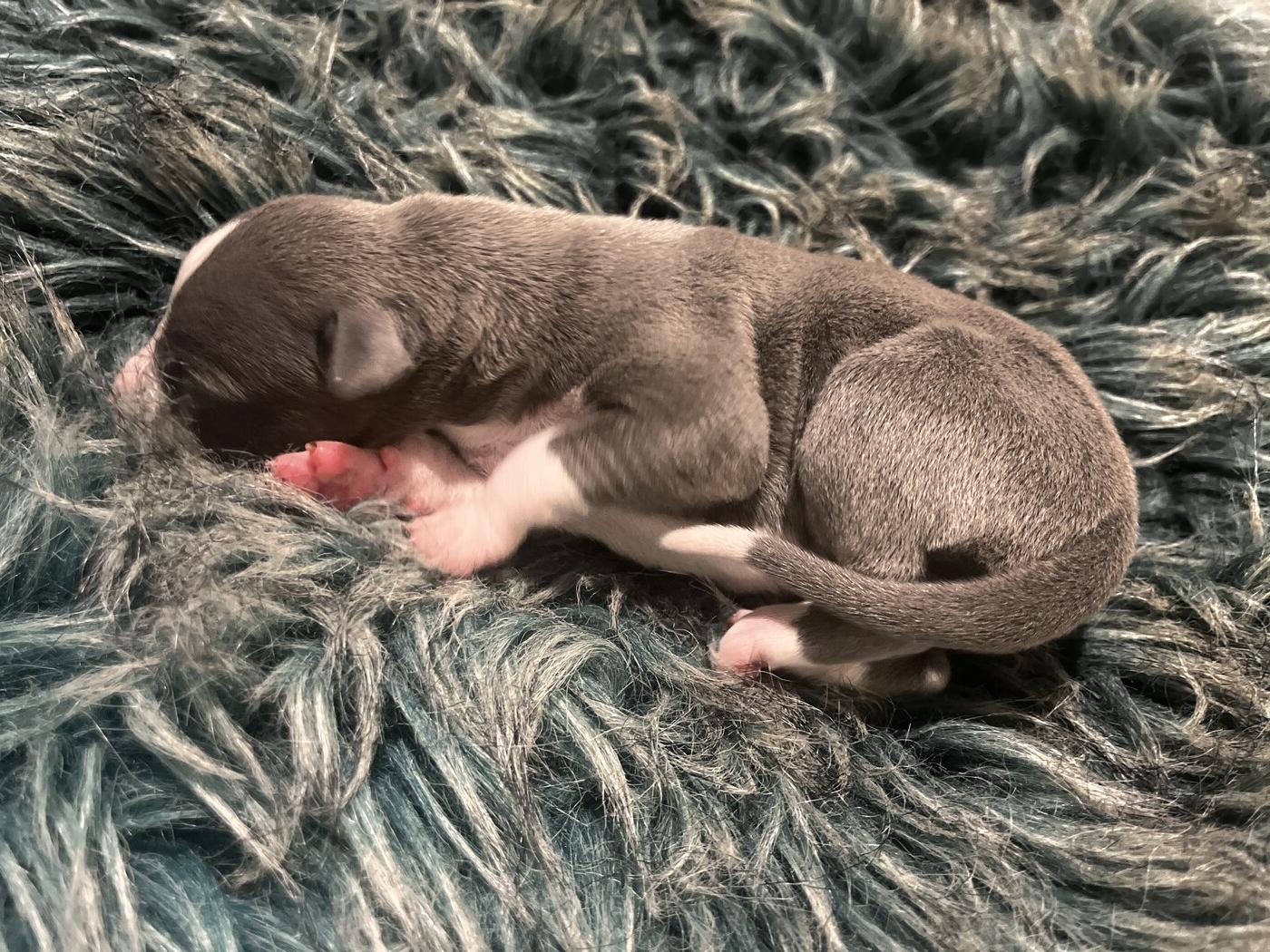 Muscari was the fifth and last pup to be born in our 'M' Litter to Radish ad Rupert and is the third of the boys, he is also blue with white trim and can be distinguished from his brother as he has a greater amount of white on his nose and front legs than Mulberry does.