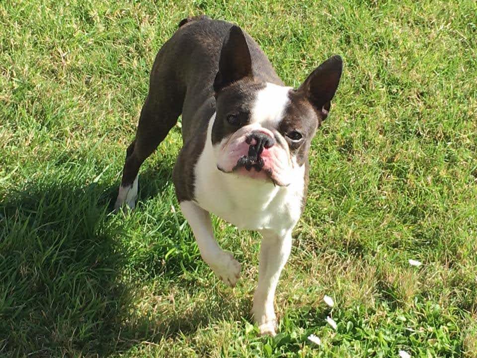 Alf was bred by us, he is a very loving and happy boy who is always pleased to meet everyone. He is a medium size Boston Terrier weighing 8.5kg